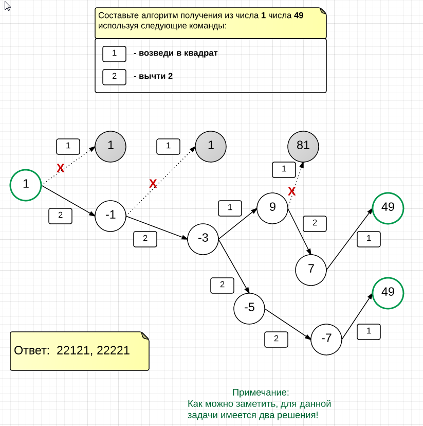 Составьте алгоритм получения из числа 1 числа 49, содержащий не более 5 команд. В ответе запишите номера команд.