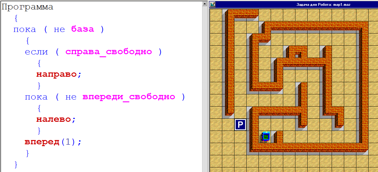 Программа для исполнителя (правило правой руки).